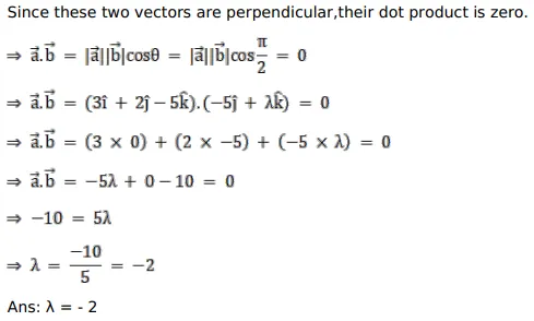 iv. $\overrightarrow{\mathrm{a}}=3 \hat{\mathrm{i}}+2 \hat{\mathrm{j}}-5 \hat{\mathrm{k}}$ and $\overrightarrow{\mathrm{b}}=-5 \hat{\mathrm{j}}+\lambda \hat{\mathrm{k}}$