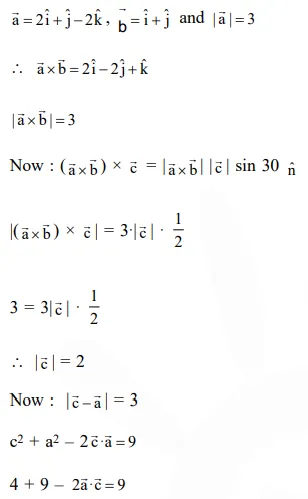Let $\overrightarrow{\mathrm{a}}=2 \hat{\mathrm{i}}+\hat{\mathrm{j}}-2 \hat{\mathrm{k}}$ and $\overrightarrow{\mathrm{b}}=\hat{\mathrm{i}}+\hat{\mathrm{j}}$. Let $\overrightarrow{\mathrm{c}}$ be a vector such that $|\overrightarrow{\mathrm{c}}-\overrightarrow{\mathrm{a}}|=3,|(\overrightarrow{\mathrm{a}} \times \overrightarrow{\mathrm{b}}) \times \overrightarrow{\mathrm{c}}|=3$ and