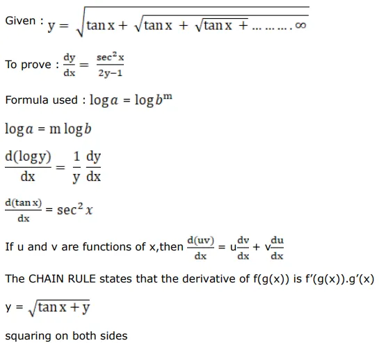If $\mathrm{y}=\sqrt{\tan \mathrm{x}+\sqrt{\tan \mathrm{x}+\sqrt{\tan \mathrm{x}+\ldots \infty}}}$, prove that $\frac{\mathrm{dy}}{\mathrm{dx}}=\frac{\sec ^{2} \mathrm{x}}{(2 \mathrm{y}-1)}$