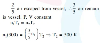 An open vessel at $27^{\circ} \mathrm{C}$ is heated until two fifth of the air (assumed as an ideal gas) in it has escaped from the vessel. Assuming that the volume of the vessel remains constant, the temperature at which the vessel has been heated is: