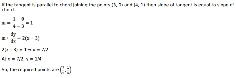 Find the point on the parabola $y=(x-3)^{2}$, where the tangent is parallel to the chord joining the point $(3,0)$ and $(4,1)$.