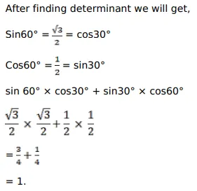 Evaluate $\left|\begin{array}{cc}\sin 60^{\circ} & \cos 60^{\circ} \\ -\sin 30^{\circ} & \cos 30^{\circ}\end{array}\right|$