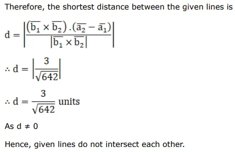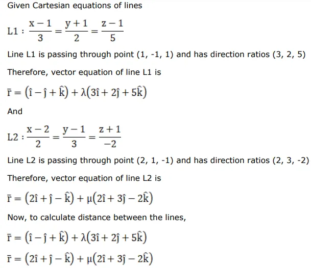 Show that the lines $\frac{x-1}{3}=\frac{y+1}{2}=\frac{z-1}{5}$ and $\frac{x-2}{2}=\frac{y-1}{3}=\frac{z+1}{-2}$ do not intersect each other.