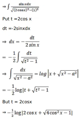 A. $-\frac{1}{2} \log \left|2 \cos x+\sqrt{4 \cos ^{2} x-1}\right|+C$