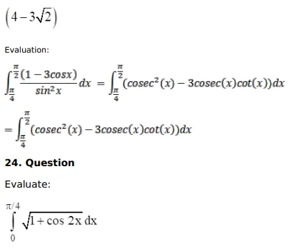 $\int_{\pi / 4}^{\pi / 2} \frac{(1-3 \cos x)}{\sin ^{2} x} d x$