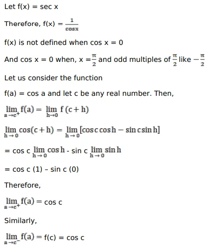 Show that $\sec \mathrm{x}$ is a continuous function.