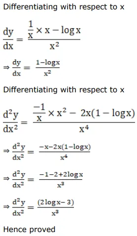 If $y=\frac{\log x}{x}$, show that $\frac{d^{2} y}{d x^{2}}=\frac{(2 \log x-3)}{x^{3}}$