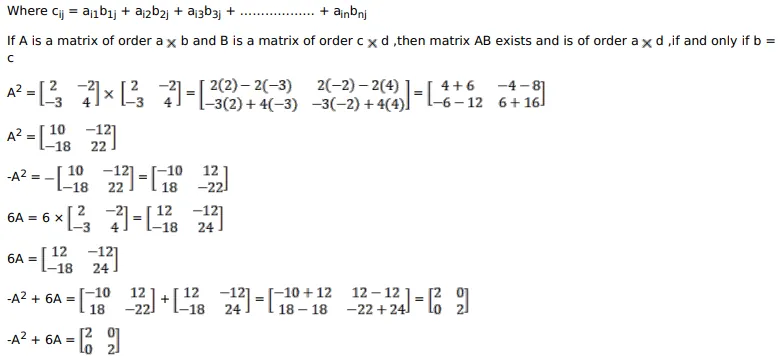 If $A=\left[\begin{array}{cc}2 & -2 \\ -3 & 4\end{array}\right]$ then find $\left(-A^{2}+6 A\right)$