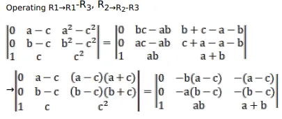 $\left|\begin{array}{ccc}1 & \mathrm{a} & \mathrm{a}^{2} \\ 1 & \mathrm{~b} & \mathrm{~b}^{2} \\ 1 & \mathrm{c} & \mathrm{c}^{2}\end{array}\right|=\left|\begin{array}{ccc}1 & \mathrm{bc} & \mathrm{b}+\mathrm{c} \\ 1 & \mathrm{ca} & \mathrm{c}+\mathrm{a} \\ 1 & \mathrm{ab} & \mathrm{a}+\mathrm{b}\end{array}\right|$