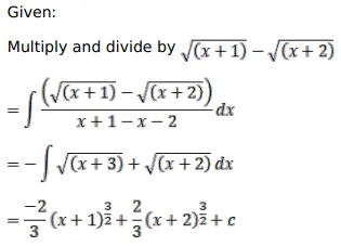 Ans. $\frac{2}{3}(\mathrm{x}+2)^{3 / 2}-\frac{2}{3}(\mathrm{x}+1)^{3 / 2}+\mathrm{C}$