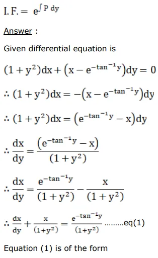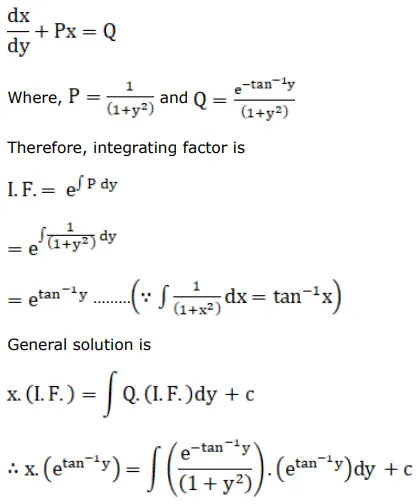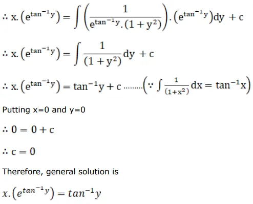 Solve $\left(1+\mathrm{y}^{2}\right) \mathrm{dx}+\left(\mathrm{x}-\mathrm{e}^{-\tan ^{-1} \mathrm{y}}\right) \mathrm{dy}=0$, given that when $y=0$, then $x=0$