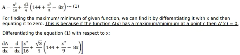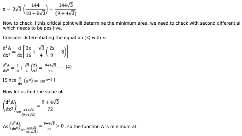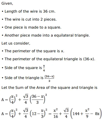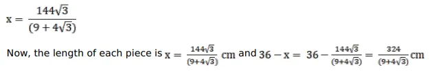 Question: A wire of length $36 \mathrm{~cm}$ is cut into two pieces. One of the pieces is turned in the form of a square and the other in the form of an equilateral triangle. Find the length of each piece so that the sum of the areas of the two be minimum.