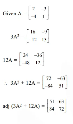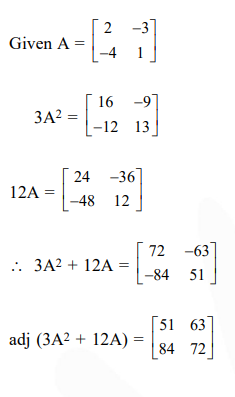 Question: If $\mathrm{A}=\left[\begin{array}{cc}2 & -3 \\ -4 & 1\end{array}\right]$, then adj $\left(3 \mathrm{~A}^{2}+12 \mathrm{~A}\right)$ is equal to :-
