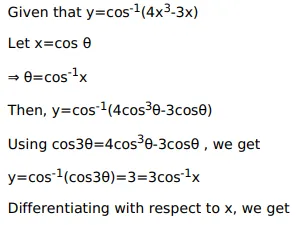 $\frac{\mathrm{dy}}{\mathrm{dx}}=\frac{-3}{\sqrt{1-\mathrm{x}^{2}}}$