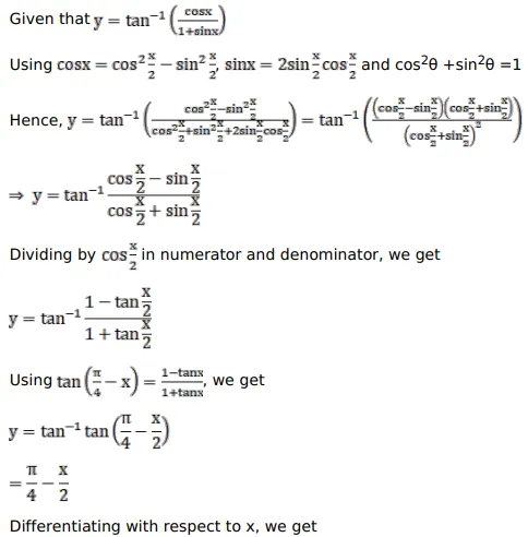 If $y=\tan ^{-1}\left\{\frac{\cos x}{1+\sin x}\right\}$ then $\frac{d y}{d x}=$ ?