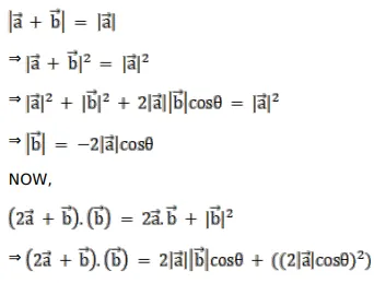 If $\vec{a}$ and $\vec{b}$ are two vectors such that $|\vec{a}+\vec{b}|=|\vec{a}|$ then prove that vector $(2 \vec{a}+\vec{b})$ is perpendicular to the vector $\vec{b}$.