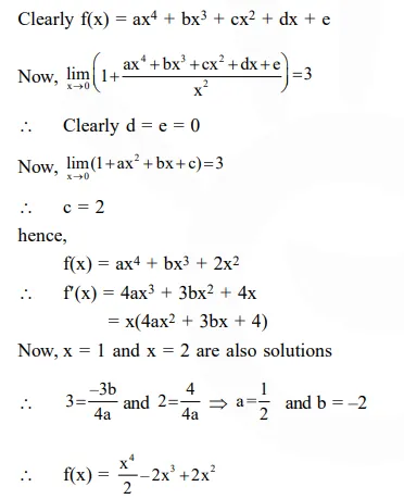 Question: Let $f(\mathrm{x})$ be a polynomial of degree four having extreme values at $\mathrm{x}=1$ and $\mathrm{x}=2$.