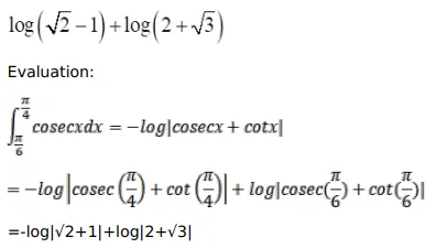 $\int_{\pi / 6}^{\pi / 4} \operatorname{cosec} x d x$