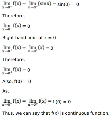 Show that function $f(x)=\left\{\begin{array}{c}\sin x, \text { if } x<0 ; \\ x, \text { if } x \geq 0\end{array}\right.$ is continuous.