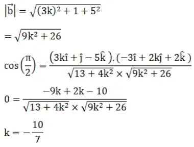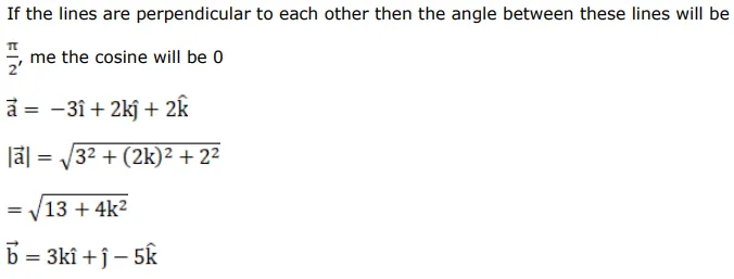 Question: If the lines $\frac{x-1}{-3}=\frac{y-2}{2 k}=\frac{z-3}{2}$ and $\frac{x-1}{3 k}=\frac{y-1}{1}=\frac{z-6}{-5}$ are perpendicular to each other then $\mathrm{k}=$ ?
