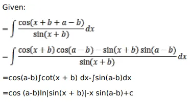 Ans. $\cos (a-b) \log |\sin (x+b)|-x \sin (a-b)+C$