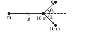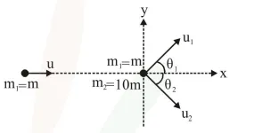 i.e. $\quad m u_{1} \sin \theta_{1}=10 m u_{2} \sin \theta_{2}$