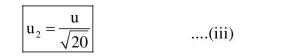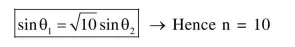 $\frac{\mathrm{u}}{\sqrt{2}} \sin \theta_{1}=10 \cdot \frac{\mathrm{u}}{\sqrt{20}} \sin \theta_{2}$