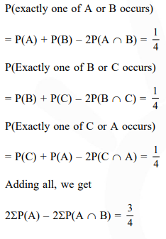 $=\mathrm{P}($ Exactly one of $\mathrm{C}$ or A occurs $)=\frac{1}{4}$ and $\mathrm{P}($ All the three events occur simultaneously $)=\frac{1}{16}$.