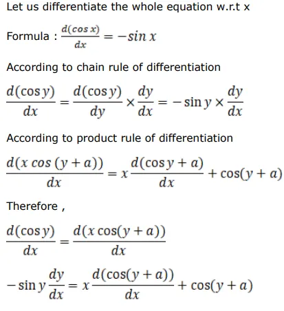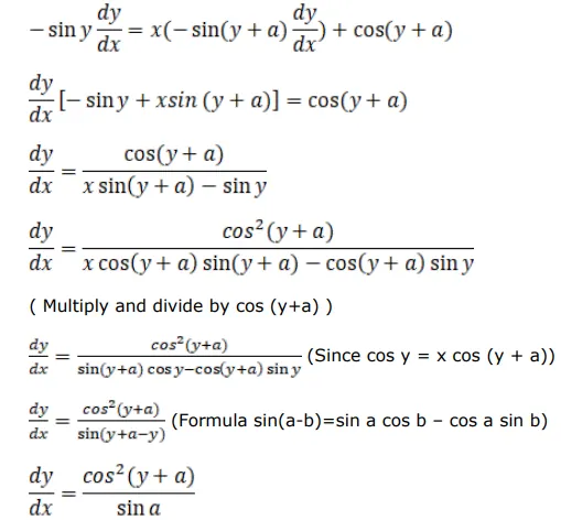 If $\cos y=x \cos (y+a)$, prove that $\frac{d y}{d x}=\frac{\cos ^{2}(y+a)}{\sin a}$.