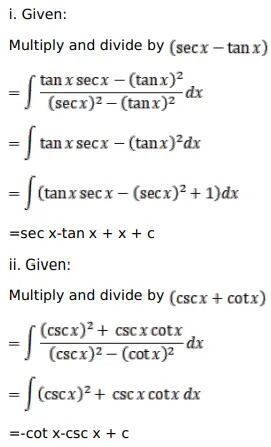 ii. $\int \frac{\operatorname{cosec} x}{(\operatorname{cosec} x-\cot x)} d x$