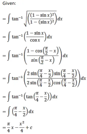 $\int \tan ^{-1} \sqrt{\frac{1-\sin x}{1+\sin x}} d x$