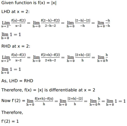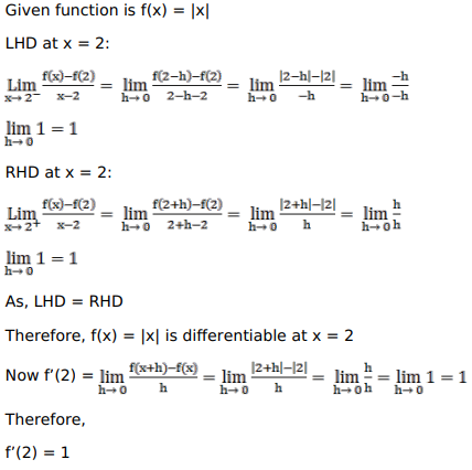 If $f(x)=|x|$ show that $f^{\prime}(2)=1$