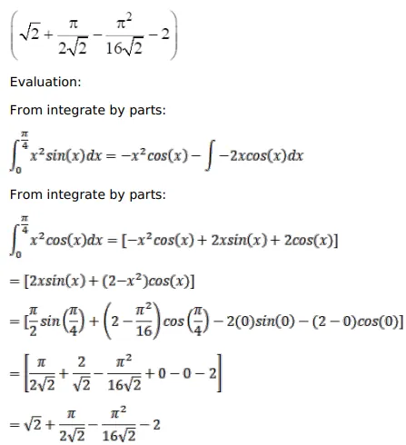 $\int_{0}^{\pi / 4} x^{2} \sin x d x$