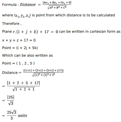 Find the distance of the point $(\hat{\mathrm{i}}+2 \hat{\mathrm{j}}+5 \hat{\mathrm{k}})$ from the plane $\overrightarrow{\mathrm{r}} \cdot(\hat{\mathrm{i}}+\hat{\mathrm{j}}+\hat{\mathrm{k}})+17=0$.