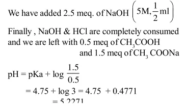 To $20 \mathrm{~mL}$ of this solution $\frac{1}{2} \mathrm{~mL}$ of $5 \mathrm{M} \mathrm{NaOH}$ is added. The $\mathrm{pH}$ of the solution is