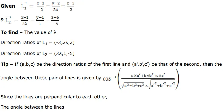 If the lines $\frac{x-1}{-3}=\frac{y-2}{2 \lambda}=\frac{z-3}{2}$ and $\frac{x-1}{3 \lambda}=\frac{y-1}{1}=\frac{6-z}{5}$ are perpendicular to each other then find the value of $\lambda$.