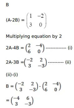 If $(A-2 B)=\left(\begin{array}{cc}1 & -2 \\ 3 & 0\end{array}\right)$ and $(2 A-3 B)=\left(\begin{array}{cc}-2 & 2 \\ 3 & -3\end{array}\right)$ then $B=?$