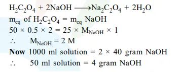 Question: $50 \mathrm{~mL}$ of $0.5 \mathrm{M}$ oxalic acid is needed to neutralize $25 \mathrm{~mL}$ of sodium hydroxide solution. The amount of $\mathrm{NaOH}$ in $50 \mathrm{~mL}$ of the given sodium hydroxide solution is :