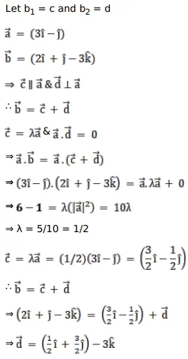 If $\overrightarrow{\mathrm{a}}=(3 \hat{\mathrm{i}}-\hat{\mathrm{j}})$ and $\overrightarrow{\mathrm{b}}=(2 \hat{\mathrm{i}}+\hat{\mathrm{j}}-3 \hat{\mathrm{k}})$ then express $\overrightarrow{\mathrm{b}}$ in the form $\overrightarrow{\mathrm{b}}=\left(\overrightarrow{\mathrm{b}}_{1}+\overrightarrow{\mathrm{b}}_{2}\right)$, where $\overrightarrow{\mathrm{b}}_{1} \| \overrightarrow{\mathrm{a}}^{\text {and }} \overrightarrow{\mathrm{b}}_{2} \perp \overrightarrow{\mathrm{a}}^{2}$