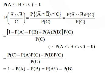 Question: Let $A, B, C$ be pairwise independent events with $P(C)>0$ and $P(A \cap B \cap C)=0$. Then $\mathrm{P}\left(\mathrm{A}^{\mathrm{c}} \cap \mathrm{B}^{\mathrm{c}} \mid \mathrm{C}\right)$ is equal to: