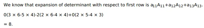 Evaluate $\left|\begin{array}{lll}0 & 2 & 0 \\ 2 & 3 & 4 \\ 4 & 5 & 6\end{array}\right|$