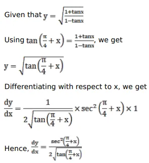 If $y=\sqrt{\frac{1+\tan x}{1-\tan x}}$ then $\frac{d y}{d x}=$ ?