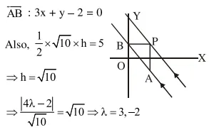 Let two points be $\mathrm{A}(1,-1)$ and $\mathrm{B}(0,2)$. If a point $\mathrm{P}\left(\mathrm{x}^{\prime}, \mathrm{y}^{\prime}\right)$ be such that the area of $\triangle \mathrm{PAB}=5 \mathrm{sq}$. units and it lies on the line, $3 x+y-4 \lambda=0$, then a value of $\lambda$ is