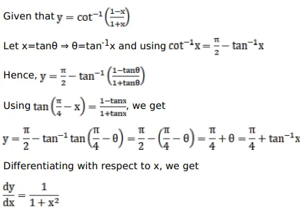 If $y=\cot ^{-1}\left(\frac{1-x}{1+x}\right)$ then $\frac{d y}{d x}=?$