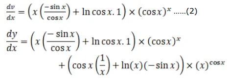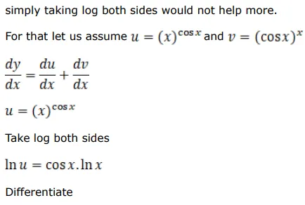 If $y=x^{\cos x}+(\cos x)^{x}$, prove that $\frac{d y}{d x}=x^{\cos x} \cdot\left\{\frac{\cos x}{x}-(\sin x) \log x\right\}+(\cos x)^{x}$