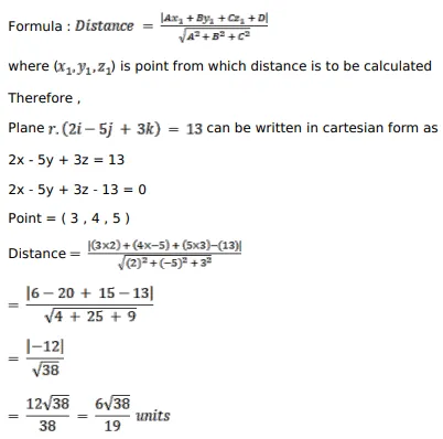 Find the distance of the point $(3,4,5)$ from the plane $\overrightarrow{\mathrm{r}} \cdot(2 \hat{\mathrm{i}}-5 \hat{\mathrm{j}}+3 \hat{\mathrm{k}})=13$.
