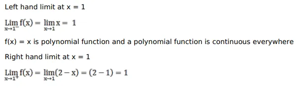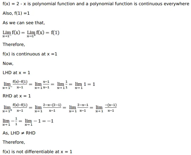 Show that $f(x)$ is continuous but not differentiable at $x=1$