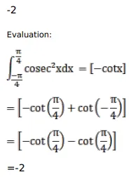 $\int_{-\pi / 4}^{\pi / 4} \operatorname{cosec}^{2} x d x$