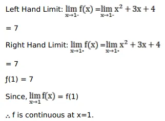 Show that $f(x)=\left(x^{2}+3 x+4\right)$ is continuous at $x=1$.