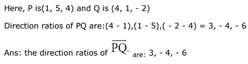 If $P(1,5,4)$ and $Q(4,1,-2)$ be the position vectors of two points $P$ and $Q$, find the direction ratios of $\overrightarrow{\mathrm{PQ}}$.